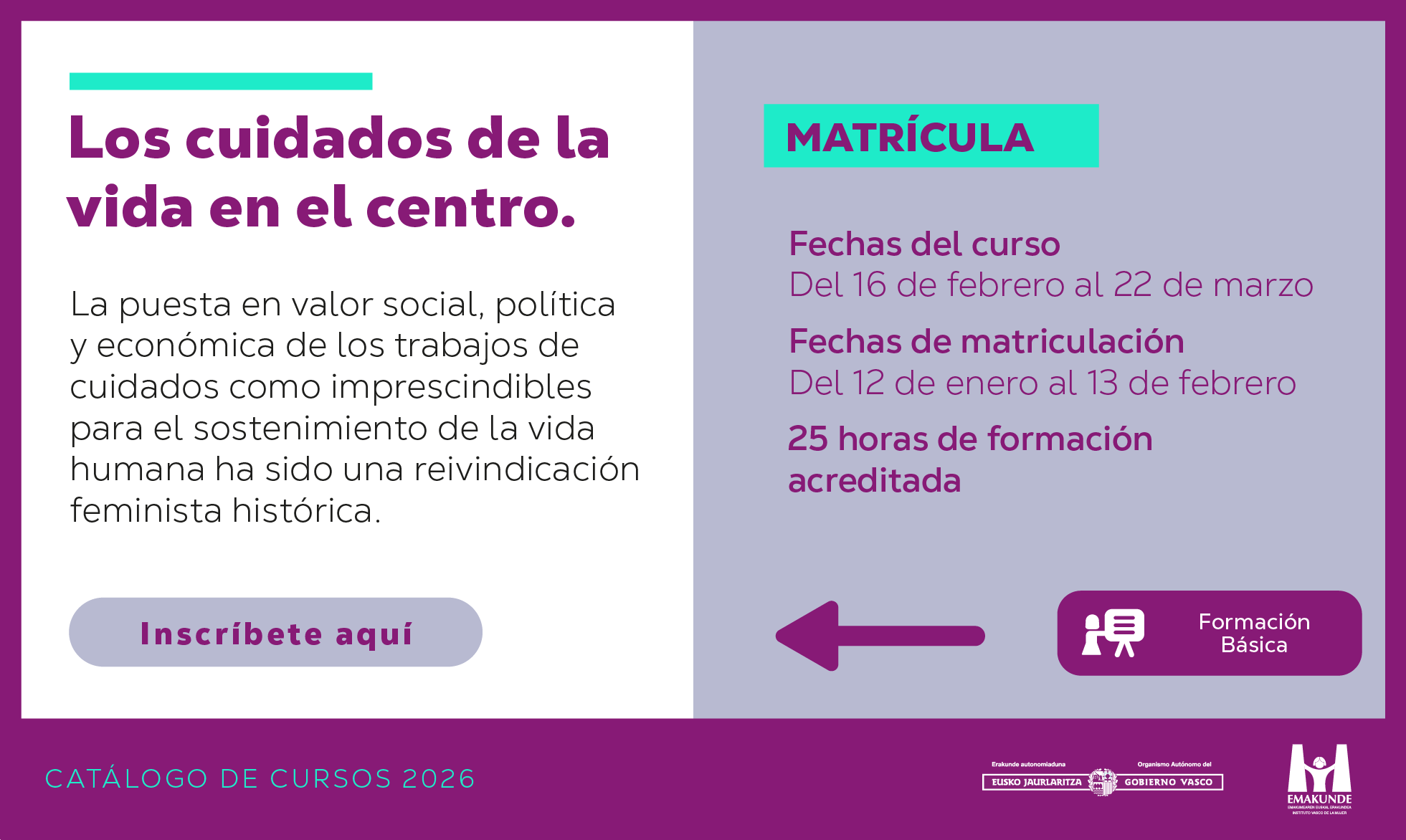 Bizitzaren zaintzak erdigunean. Para conocer las fechas de matriculación y del curso, profesorado, temas, etc puedes descargar la ficha desde aquí . Para matricularte directamente pulsa aquí .